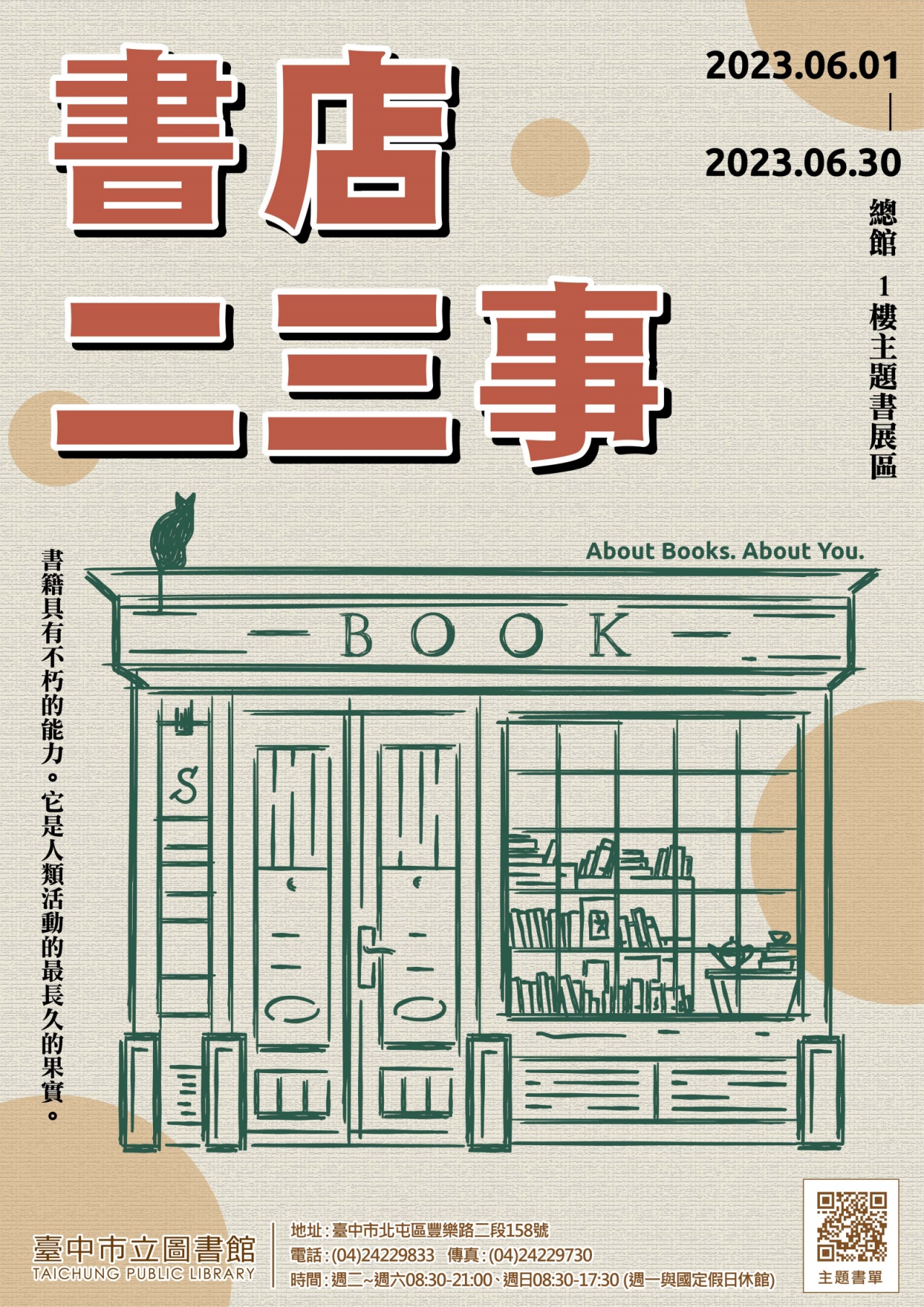 中市圖總館6月1日起至6月底推出「書店二三事」書展。