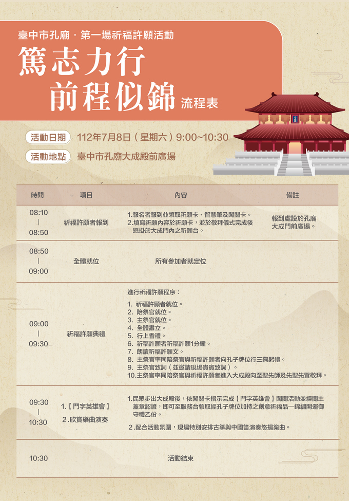 台中孔廟第一場祈福活動簡章。