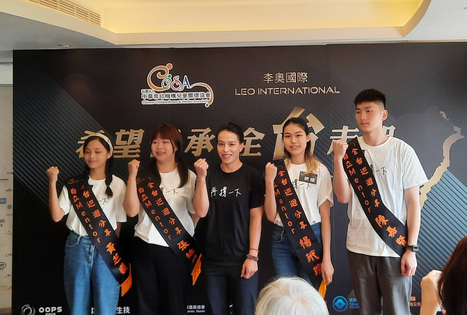此外,奧運金牌選手、CCSA代言人郭婞淳特別前來為〝失家兒〞加油打氣,不論遭遇多大困難,「再撐一下」就可能過得去,生命終會找到屬於自己的機會。 她也在此次誓師大會,感人宣誓:「將秉持熱忱、關愛、扶持的態度,積極參與CCSA中華育幼機構兒童關懷協會的失家兒服務。陪伴兒童和青少年追尋夢想、 療癒傷痛,直到他們正向自立,擁有屬於自己的家。」同時,為四位自立Mentor掛上榮譽背帶,象徵賦予自立Mentor崇高的責任和使命必達的信心,繼續推動這項深具意義與影響的任務。