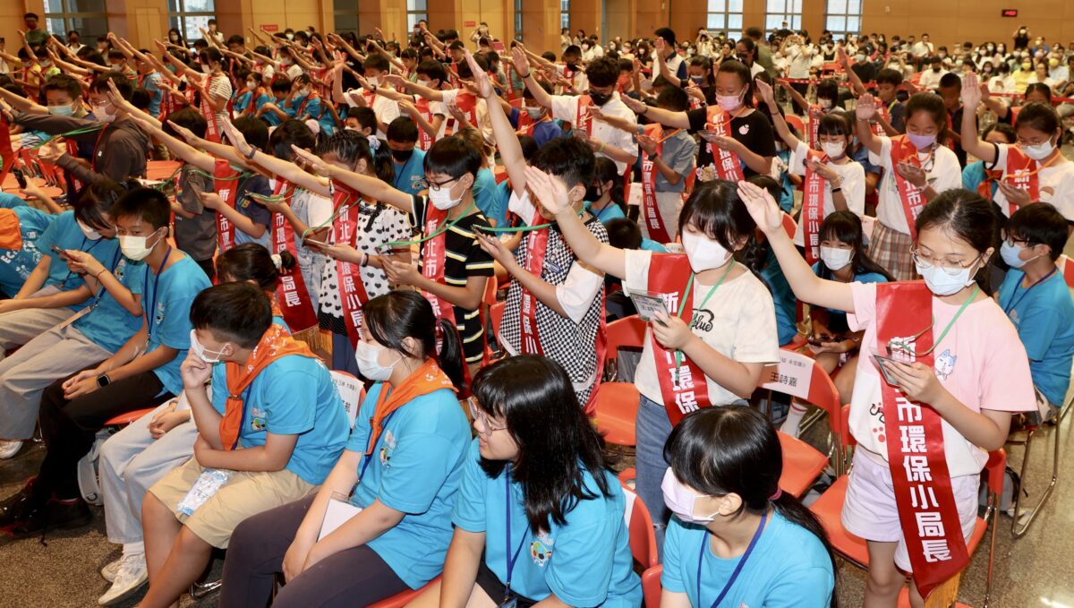 新北市環保局2日舉辦「第11屆環保小局長交接暨授證典禮」,環保局長程大維親自頒發當選證書給第11屆新任環保小局長們,並依循傳統,讓完成一整年環保任務的第10屆小局長親手為學弟妹們掛上臂帶,在宣誓環保使命的同時也傳承這份榮譽與責任,許多家長及老師也特別來到現場觀禮,見證孩子們的成長與榮譽。