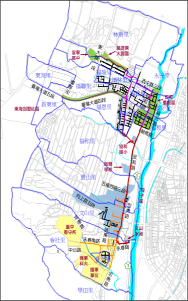臺中市文山污水下水道分支管網暨用戶接管工程(二)分標範圍圖(含里別)。(圖/台中市政府提供)