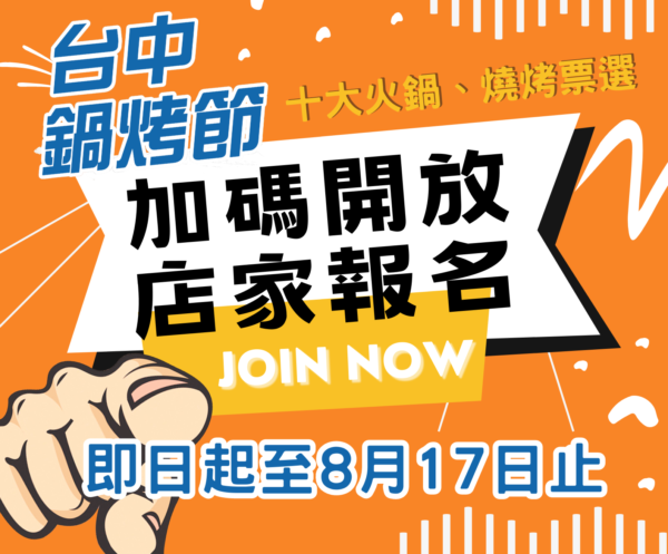 台中鍋烤節自7月17日開跑以來,台中市政府不斷接到店家詢問是否還能報名,聽到報名截止皆表示相當扼碗,遺憾未能參加此次台中鍋烤盛宴,紛紛要求再開放報名,面對敲碗聲不斷,市府決定從善如流,即日起開放加碼報名至8月17日競賽結束為止。