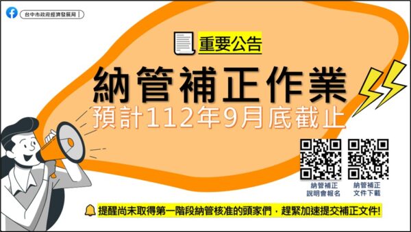 1.納管補正申請,相關文件下載網址: https://www.economic.taichung.gov.tw/1492482/Lpsimplelist