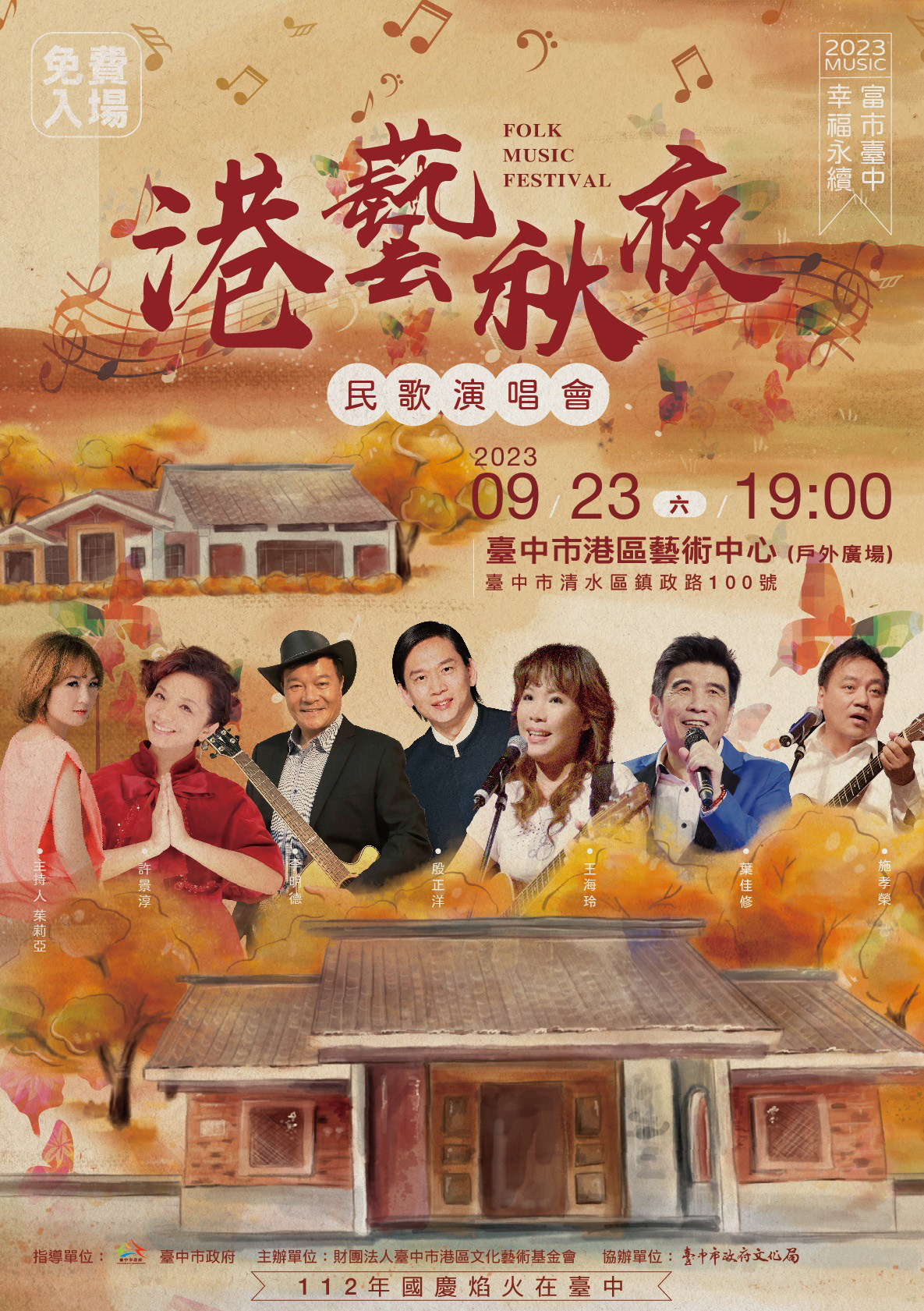 又到了秋高氣爽的九月,每年到了秋季,台中是全台氣候最怡人、最適合出遊的城巿;台中市港區藝術中心9月規劃一系列精彩活動,包括眷村主題展、中秋民歌之夜、全國百號油畫大展,以及清水眷村文化園區週六街頭藝人演出等精彩藝文活動,並結合最新出爐2023必比登推介平價美食,邀請民眾共度「藝術之秋」、「美食之秋」,讓身心靈同獲滿足。