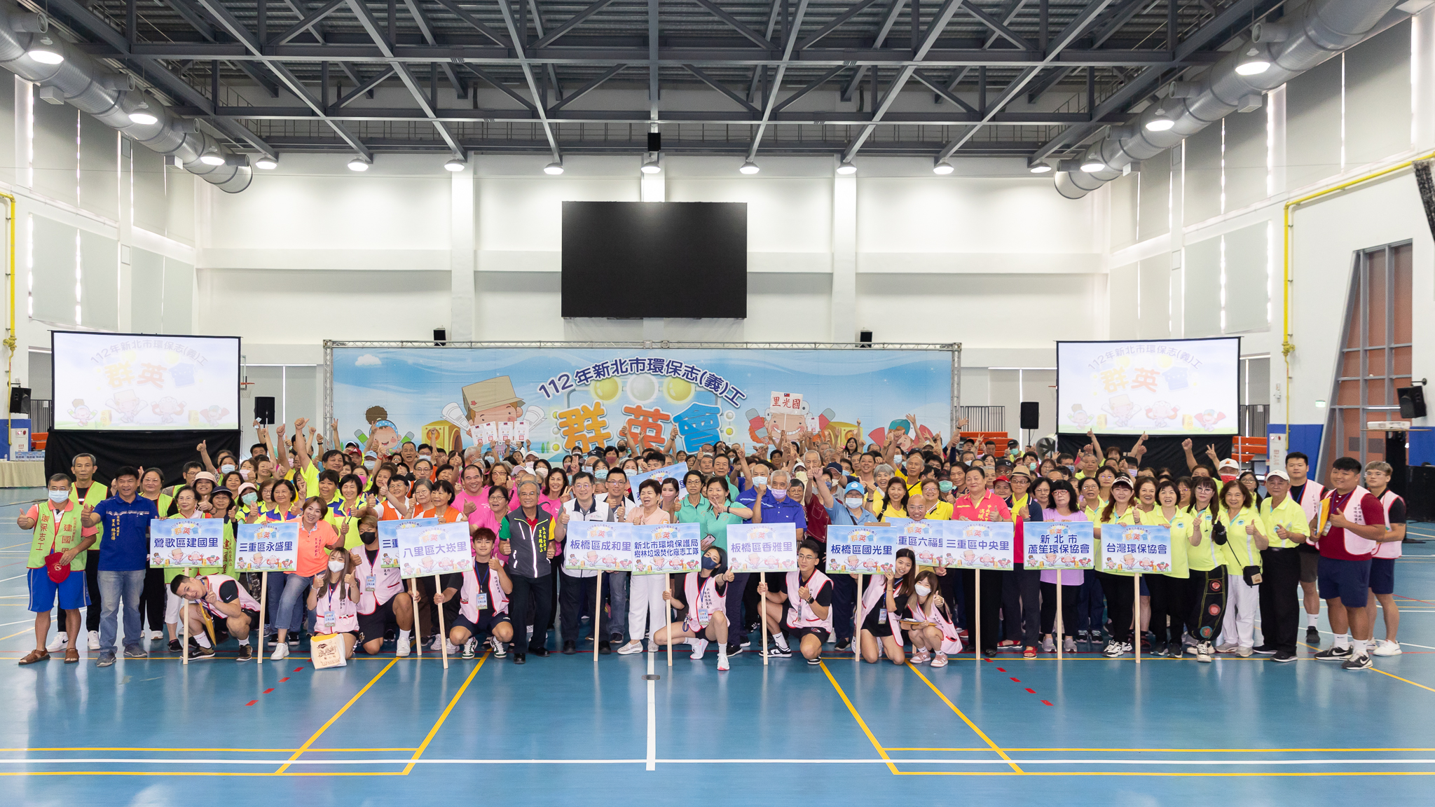 新北市「環保志(義)工群英會」17日在國立臺北大學體育館熱鬧登場,超過300名來自新北市各區里及民間團體的環保志(義)工齊聚一堂,以多樣趣味的競賽方式,展現新北市志(義)工平時積累的環境知識成果,同時也展現他們的鬥志與團結凝聚力。競賽最後由樹林垃圾焚化廠志工隊、新北市蘆笙環保協會、三重區六福里及永發里分別獲得競賽冠軍,4組隊伍將代表新北市參加環境部舉辦的全國群英會,為新北市爭取榮耀。