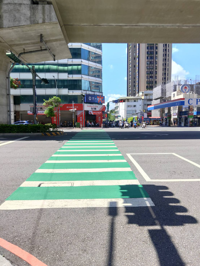 交通局也同時盤點市內學校、醫院、商圈、國民運動中心及20大公共運輸場站周邊的行人通行路口,辦理增設行人友善交通設施,包括號誌、行人專用或早開時相、相關設施與綠斑馬等,提升行人通行安全,目前已完成設置行人庇護島193處、退縮行穿線112處、標線型人行道127條、綠斑馬586處、123處行人專用時相及228處行人早開。