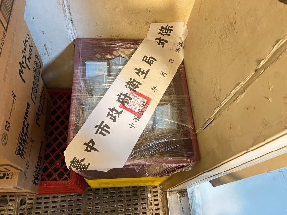 食安處查獲烘焙工廠內存放逾期未使用之原料。(圖/台中市政府提供)