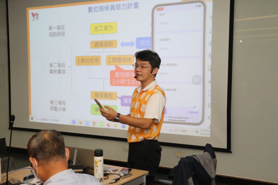 「買APPLE手機給我有什麼用,倒不如給我蘋果還能咬一口!」「吼,這問題已經跟你說500遍了…」高齡長輩在使用智慧型手機常碰到困難,問兒孫有時又被碎念,以至於更閉鎖。新北市社會局為協助長輩勇於學習,跟上時代,委託台灣老大人活力發展協會,專為社區關懷據點培訓數位陪伴員,歷經3天18小時的訓練,經學習認證後,回到各社區教導長輩,同儕學習,長輩比較不會難為情。