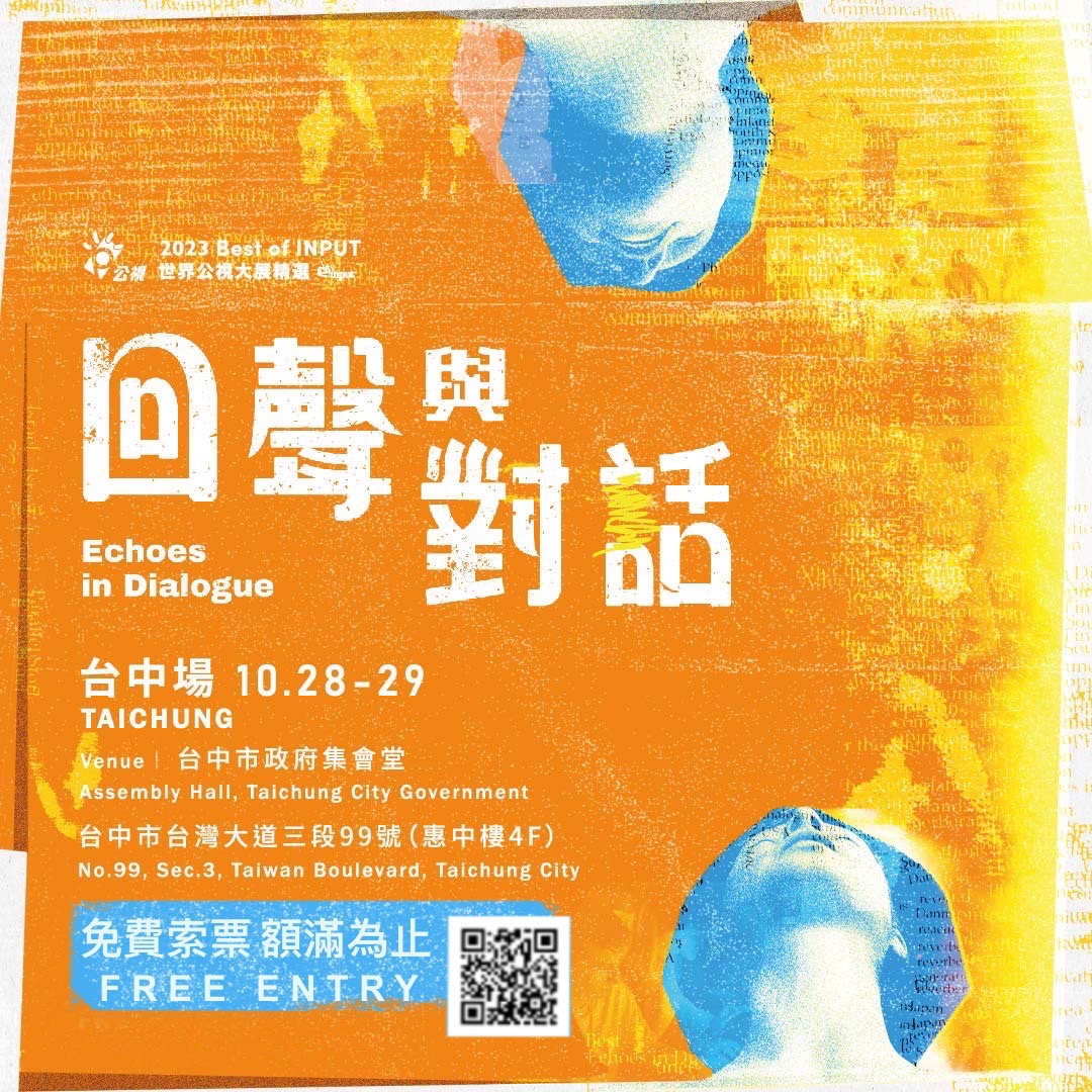 議題含金量最高之稱的「世界公視大展精選」(Best of INPUT)台中場活動,將於10月28日至29日於台中市政府「集會堂」搶先登場!此屆主題「回聲與對話」規劃5大單元12部影片相互呼應,將社會議題化作影像呈現,激盪出多元嶄新觀點的回聲。即日起免費線上索票,歡迎相約好友踴躍參與,享受來自國際各地的知性饗宴。