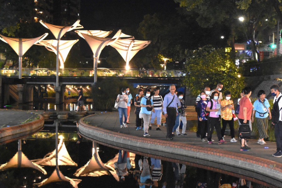 志工隊長沈三家說,從109年藍調中港之後,夜間光雕的中港河廊就打響了名號,原來水利設施在夜晚經過適度的妝點,也能展現出吸引民眾到訪的魅力,讓星光導覽的品牌愈來愈亮眼,也愈來愈多的民眾相約體驗都市河廊的夜間之美,志工們都樂見於這樣的成果。