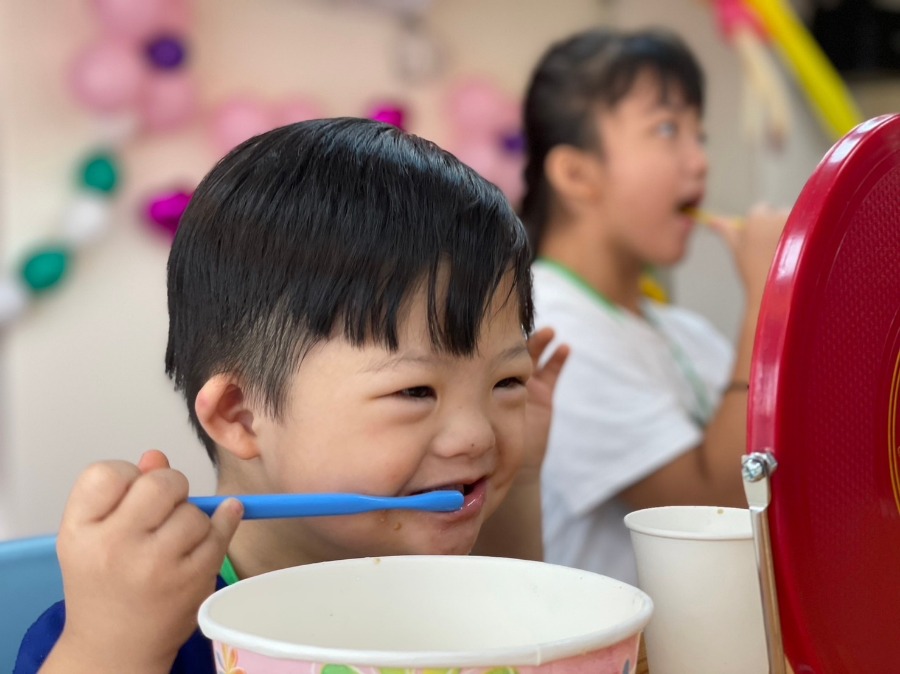 八里愛心教養院及附設三峽日托中心推動口腔衛生和潔牙比賽已有13年,院長謝鑫敏表示,有些特教院生因身體張力的關係,不容易清潔牙齒,但口腔衛生關係孩子的飲食和健康,因此照顧員仍必須學習技巧,協助並鼓勵院生刷牙。