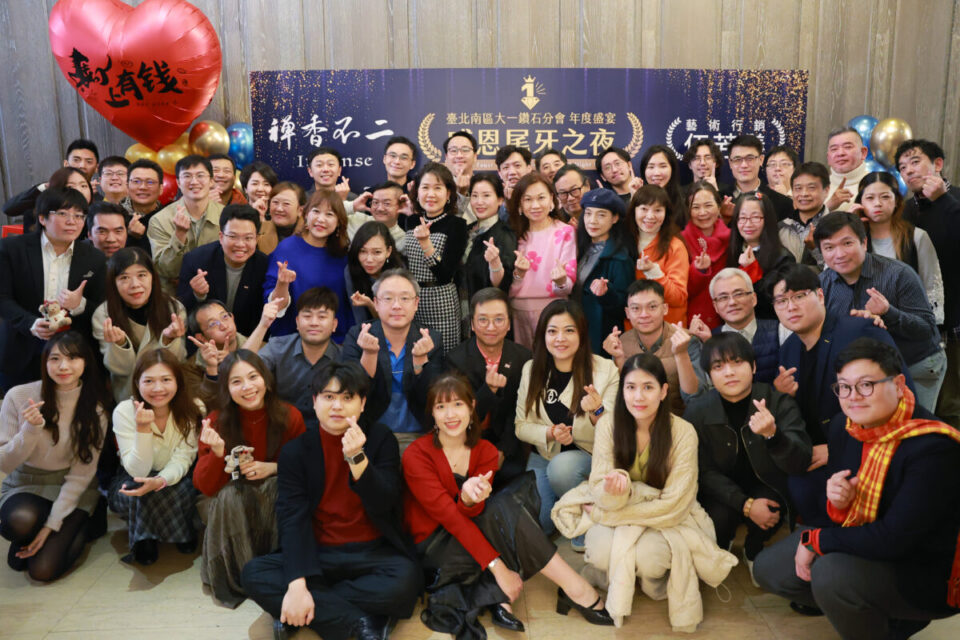 BNI臺北南區大一鑽石分會舉辦年度尾牙活動,來自不同產業的企業主與會員齊聚一堂合影留念,透過實體交流與互動,展現分會高度凝聚力與多元產業共融的商務氛圍。圖:BNI大一分會提供