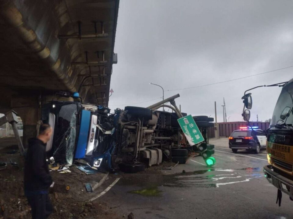 本文章來自《台灣線報》。原文:【有片】擦撞左轉轎車!桃園台61曳引車整輛側翻「擊倒」路口號誌桿
